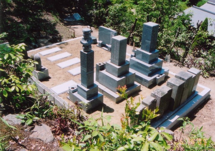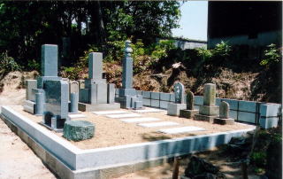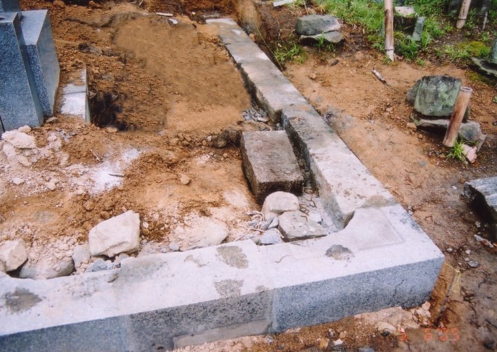 新しく古墓の台石を据付