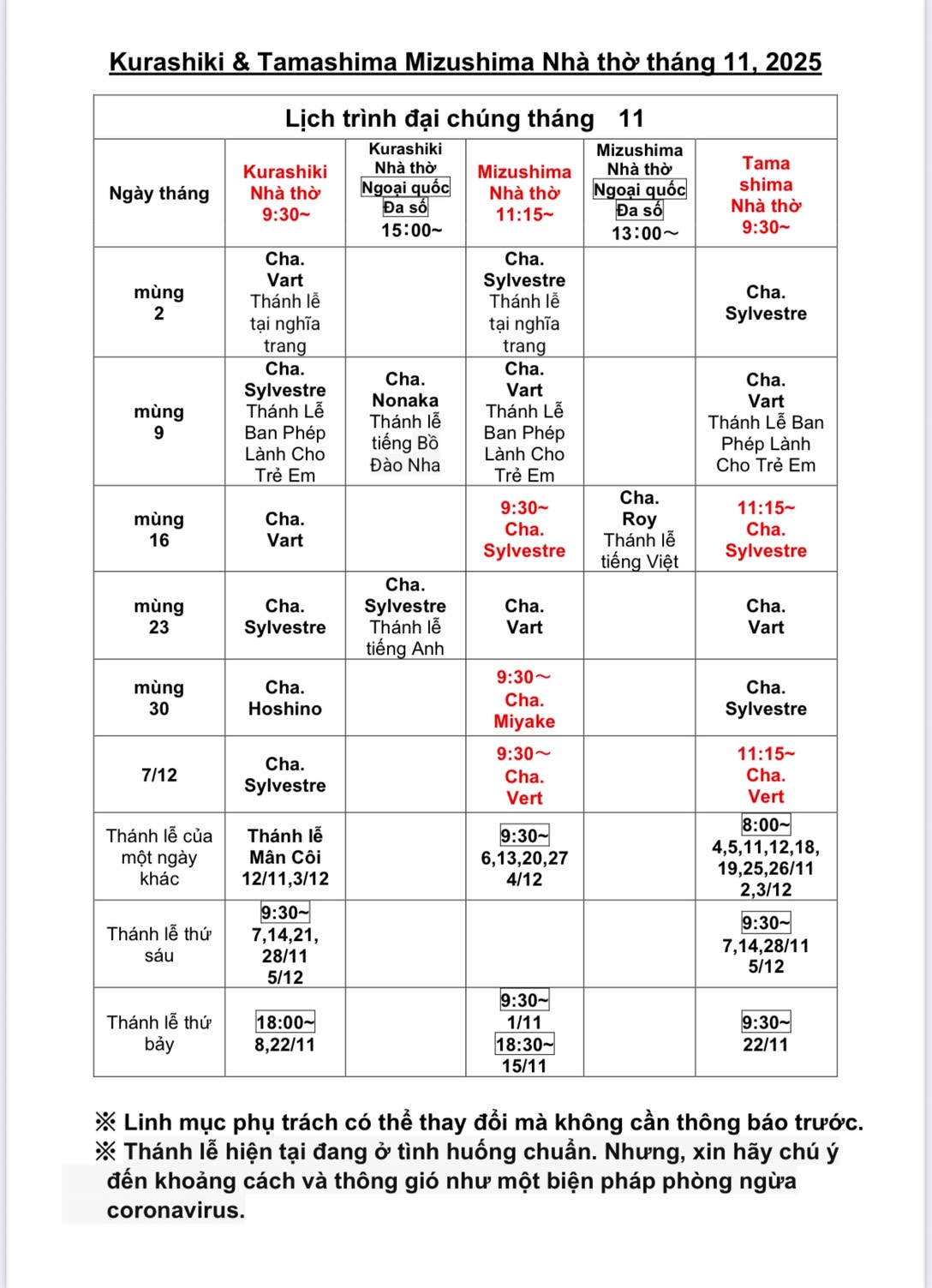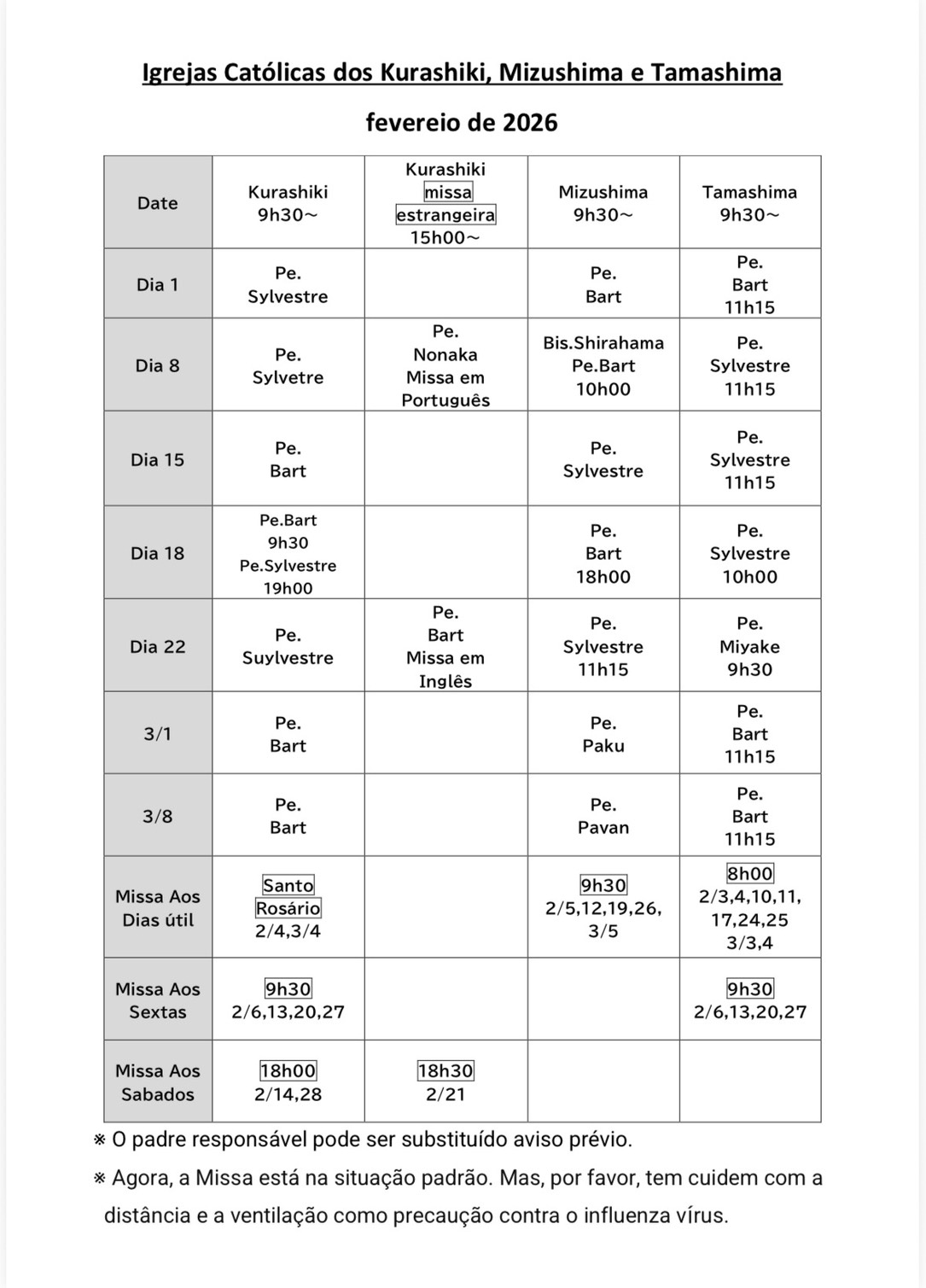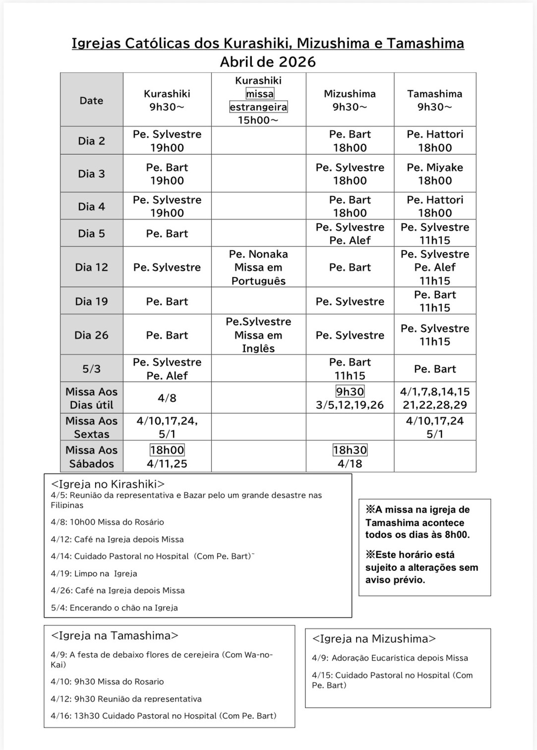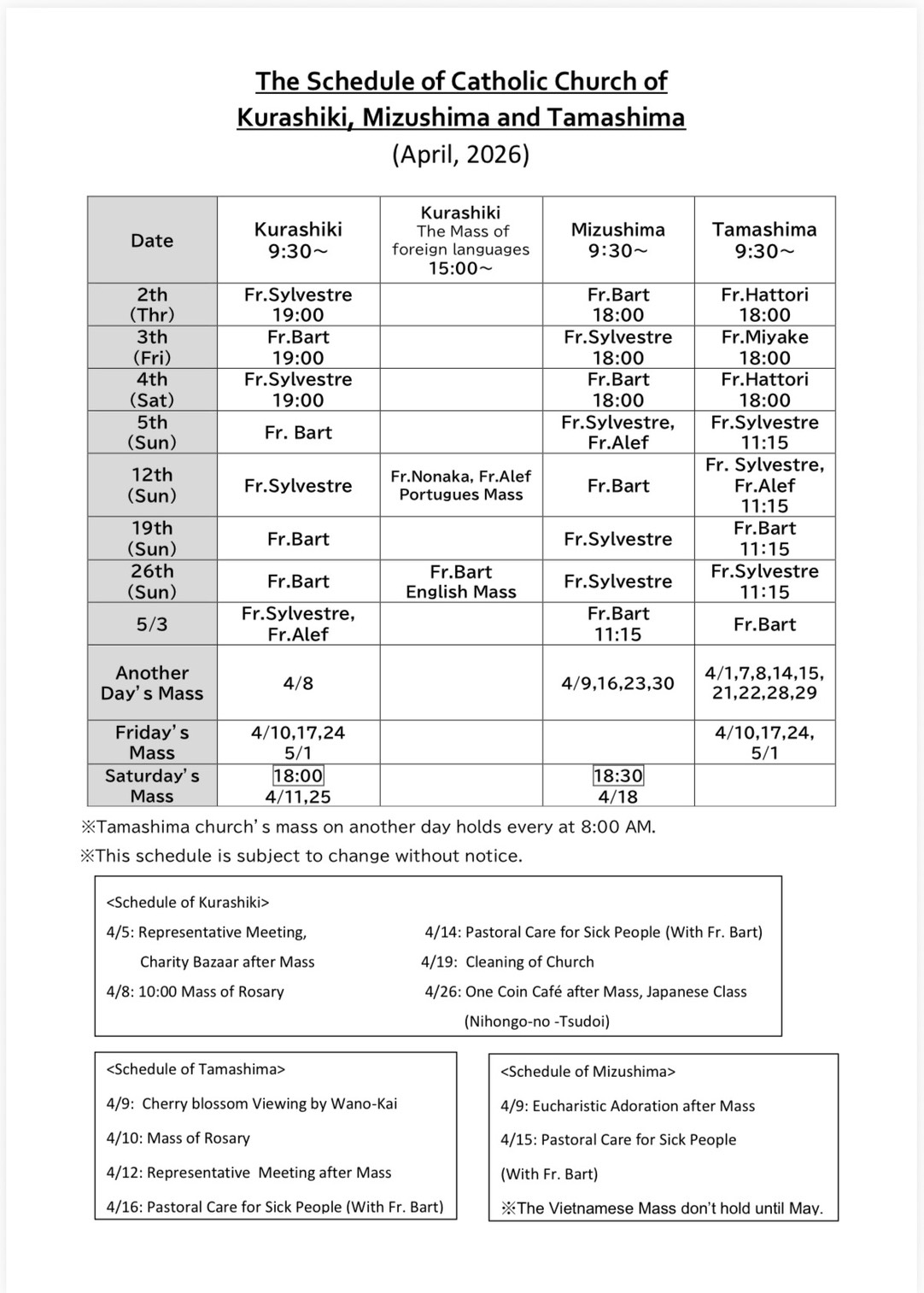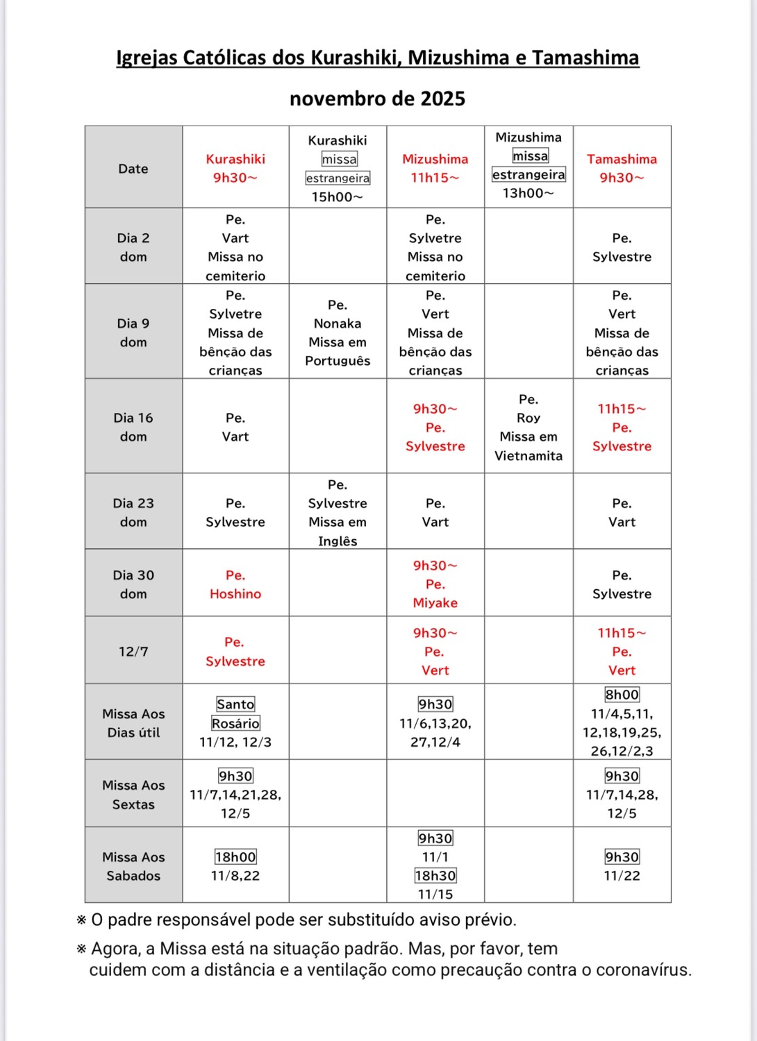 AM:9:30~ シルベスタ神父 PM3:00~ポルトガル 野中神父 |