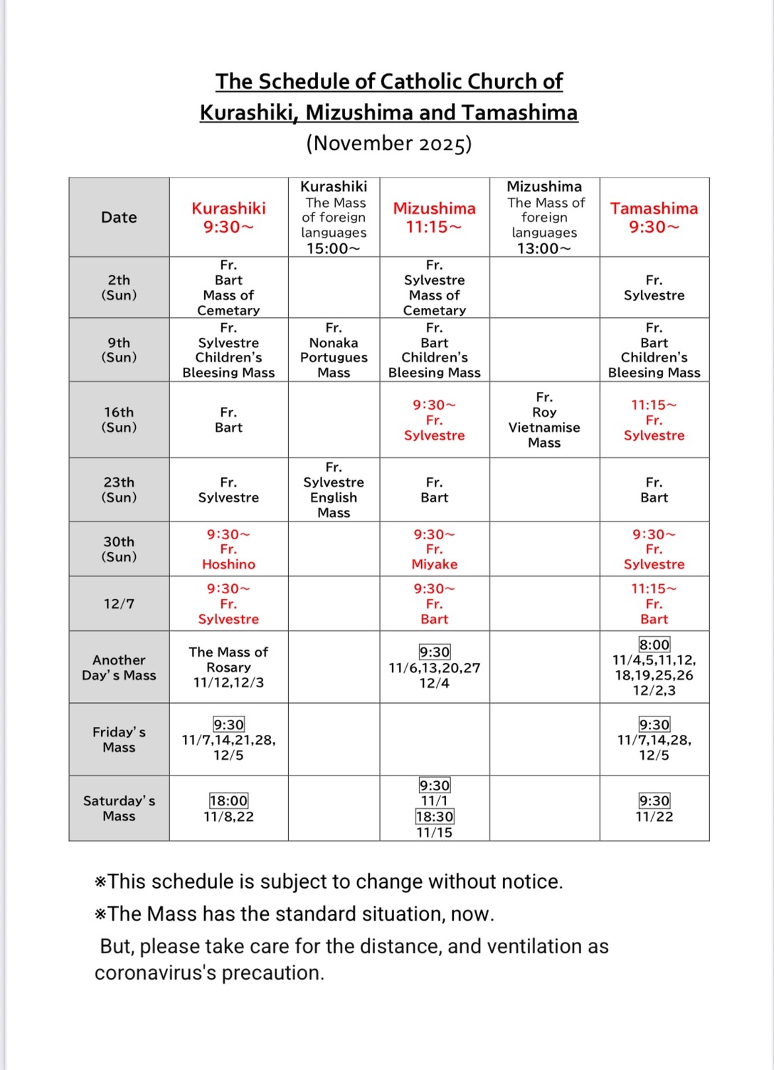 AM:9:30~ シルベスタ神父 PM3:00~英語 シルベスタ神父 |