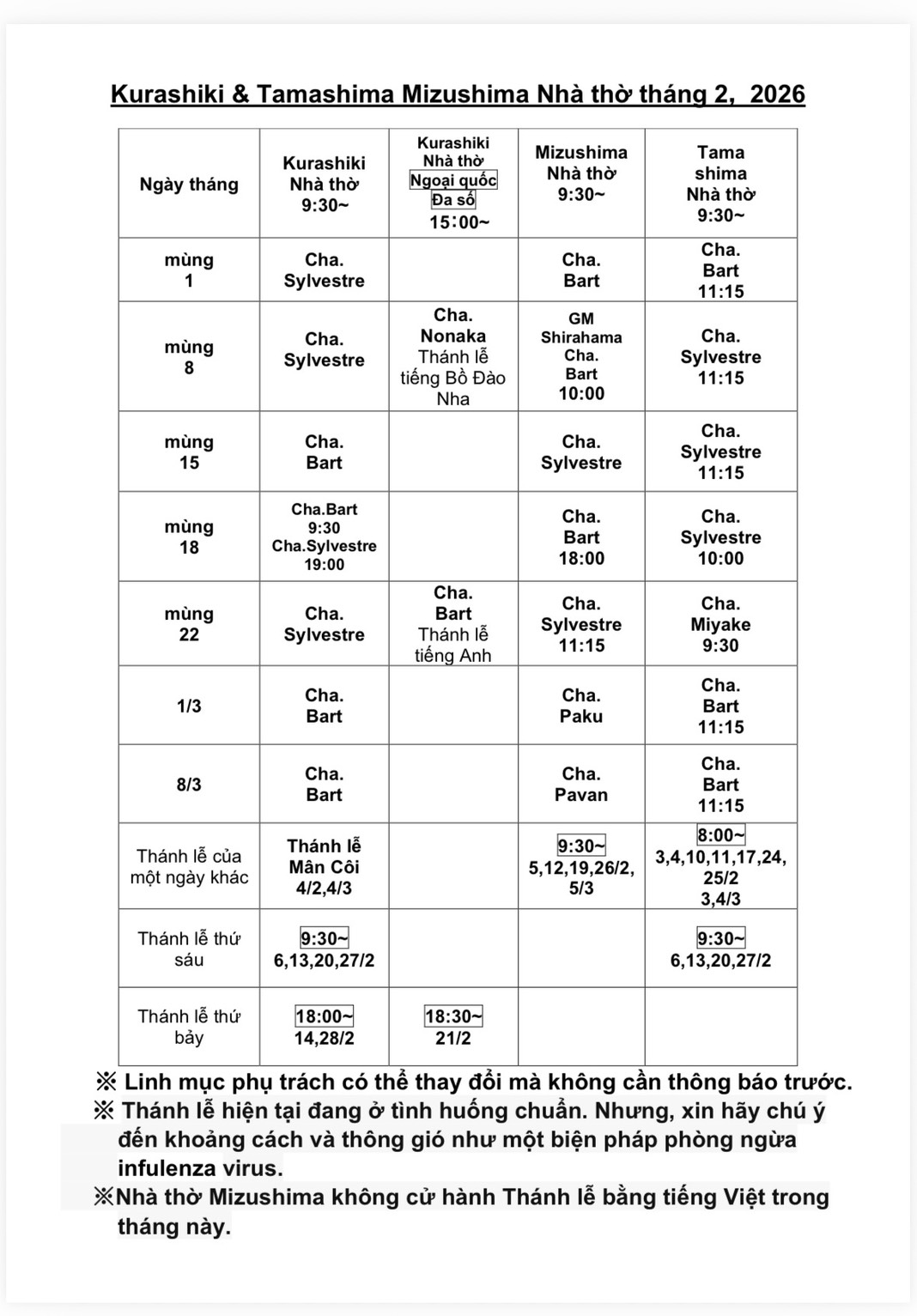 AM:9:30~ シルベスタ神父 PM3:00~英語 バート神父 |