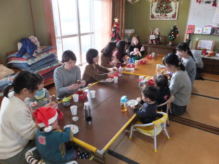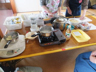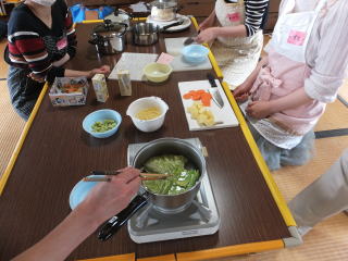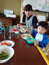 平成30年5月8日(火)は[子育てひろば はなっこ]のまんま教室を開催しました。 9組の親子が参加してくださいました。 メニューは「10倍がゆ 豆腐とキャベツのあえもの 柔らかゴロゴロ野菜 そら豆のシチュー 鮭のお焼き 煮りんご」でした。 ママたちは楽しそうに調理していました。 子どもたちは託児スタッフと一緒に過ごしました。 調理後はみんなで試食しました。 お子さんのペースに合わせて進めていきましょう。 ![]() ![]() ![]() ![]() ![]() ![]() おばあちゃんの参加もできます。 お仕事で来られないお母さんの代わりにお越し下さい。 平成30年5月22日(火)は [子育てひろば はなっこ]の幼児食教室を開催しました。 2組の親子の参加がありました。 メニューは「初夏のパスタ そら豆のシチュー 豆腐ハンバーグ キャベツとツナの塩昆布あえ いちごのムース」でした。 子どもさんの成長に合わせたメニューを見直す機会になりました。 ママたちは楽しそうに調理をしていました。 その間 子どもたちは託児スタッフと一緒に遊びました。 みんなで美味しくいただきました。 ![]() ![]()