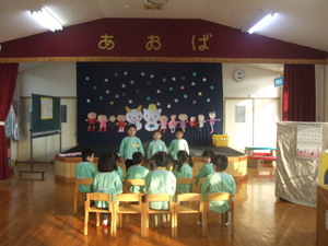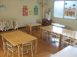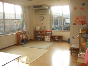 ○遊戯室 年長児クラスも兼ねています ![]() 行事の時には成長が見られるよ!! |