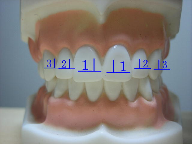歯並びの真ん中を’I’でわけてそこから何番目の歯かを数字で示しています。