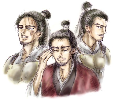 北方版では、よくこめかみに手を当てて痛みを堪えてますね。